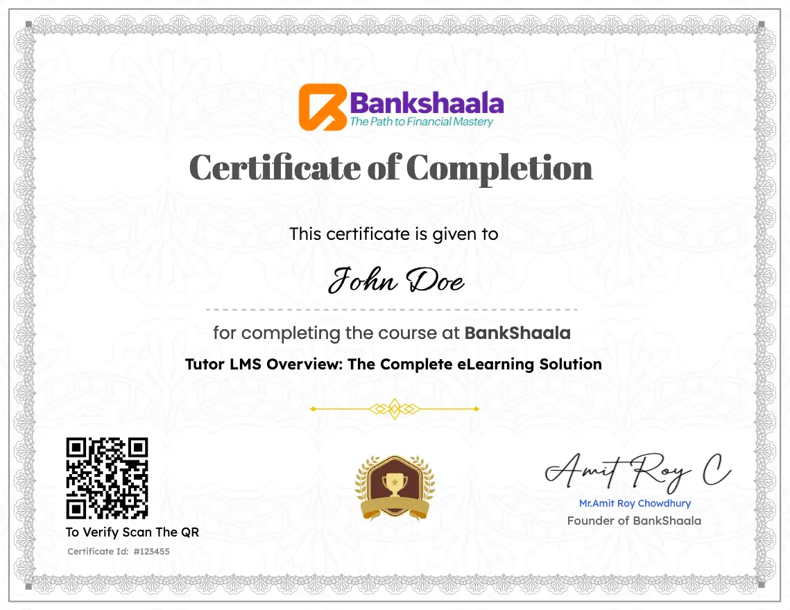All certificate images are for illustrative purposes only and may be subject to change at the discretion of Bankshaala